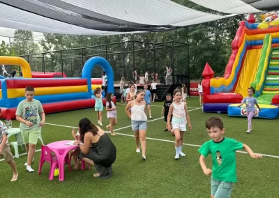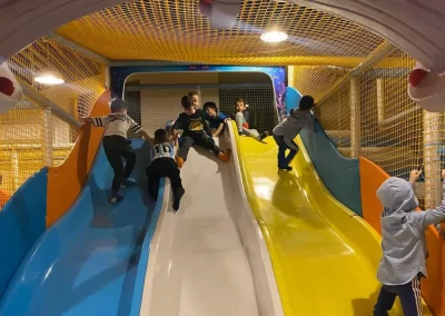 Copiii se vor simți ca într-o lume de poveste în spațiul nostru de joacă interior și exterior. Le oferim o gamă variată de activități, de la tobogane și leagăne, până la jocuri interactive și ateliere creative.
